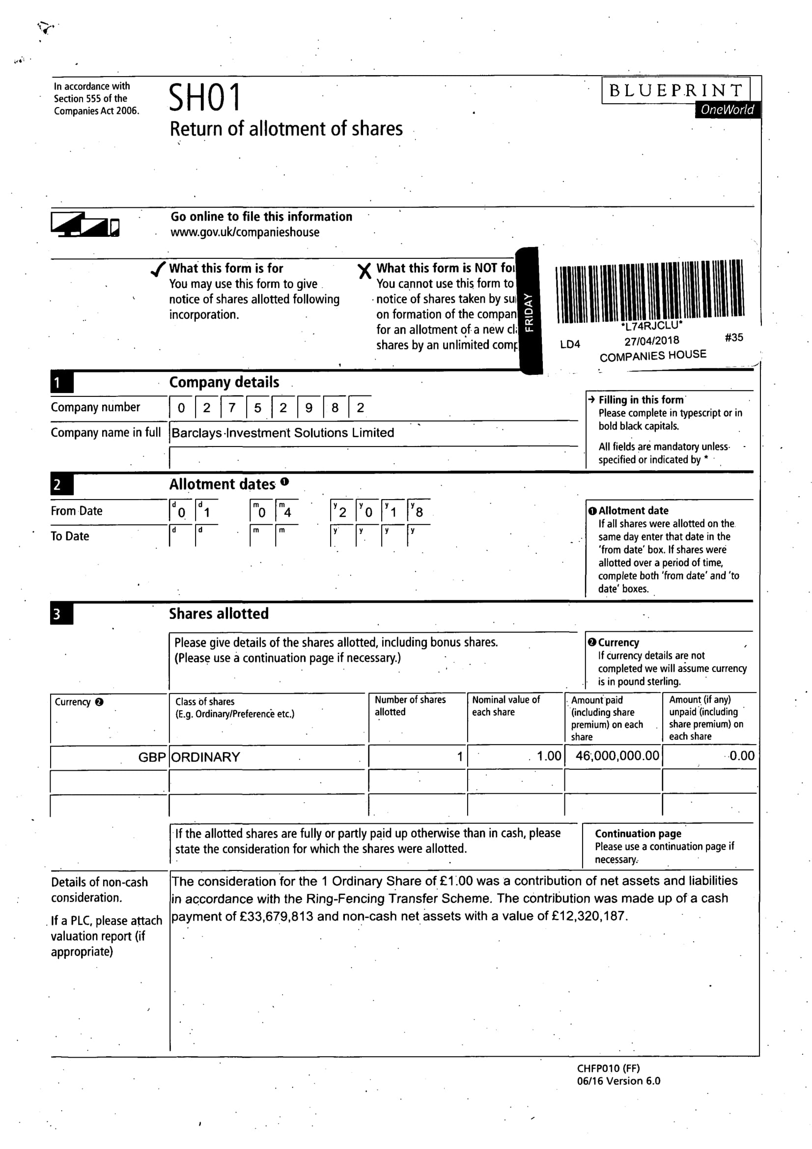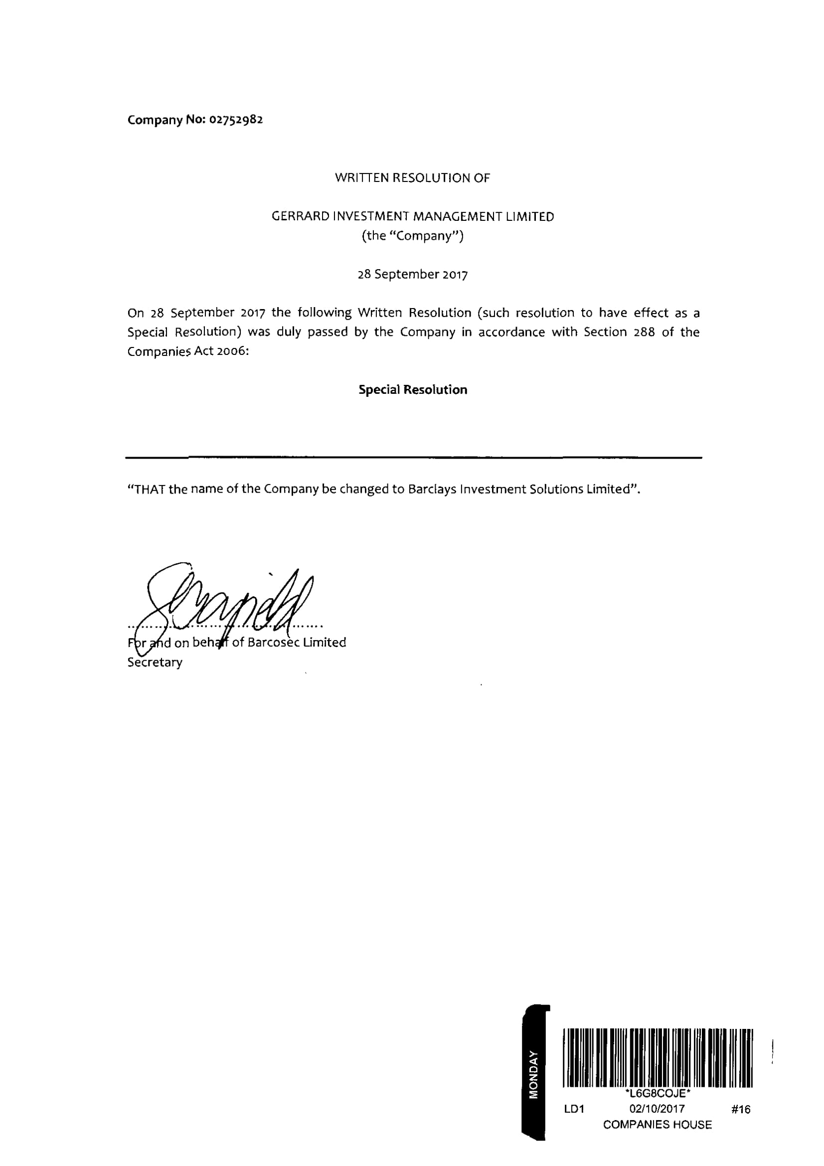 Company Name: BARCLAYS INVESTMENT SOLUTIONS LIMITED